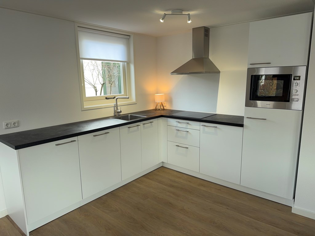 Entree, hal, vaste trap naar verdieping, toilet, berging met CV-ketel en meterkast, badkamer voorzien van douchehoek en wastafel. Woonkamer met open keuken en openslaande tuindeuren naar terras. Open keuken voorzien van keukeninrichting met diverse inbouwapparatuur. Slaapkamer annex badkamer. Tweede badkamer met douchehoek, wastafel en toilet.